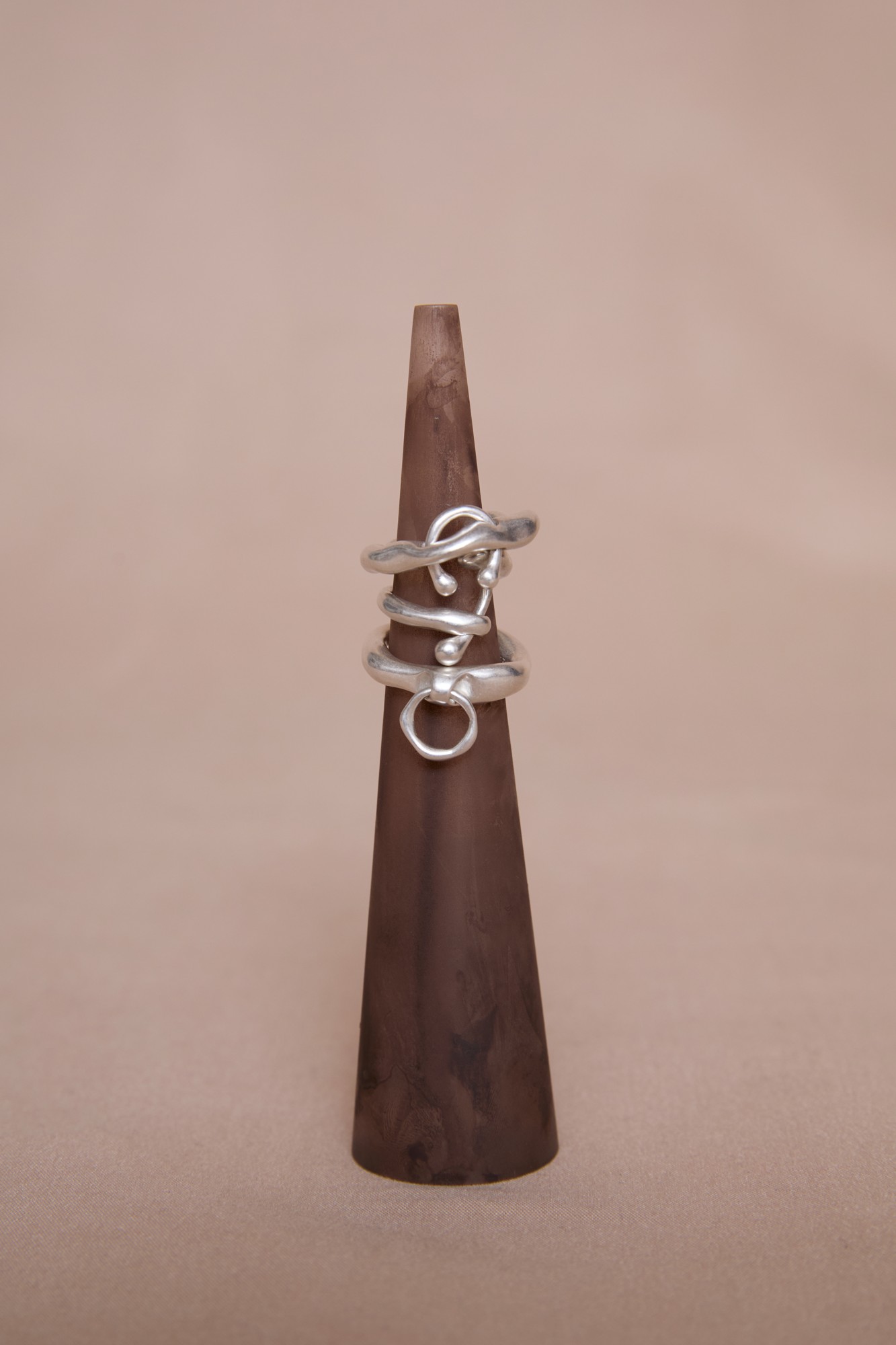 身体装飾の原点であるボディピアス、そして普遍的象徴であるハートというスタンダードなモチーフをベースに、あえて未精製な質感とローエッジの表情を残しました。完璧な左右対称には仕上げず、わずかな揺らぎを含んだフォルムへと再構築しています。