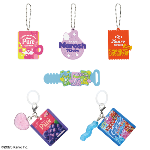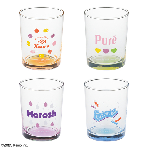 A賞は〈ピュレグミプレミアム〉のようなグミ粒の中が光るシリコン製のライト。B賞は〈ピュレグミ〉デザインの透明感がかわいらしいウォーターポット。C賞には、メッシュ素材で小物やお菓子を入れるのにちょうどいいサイズのポーチ、D賞にはグミ粒がお菓子の袋の中で動く様子を再現したシャカシャカカードケースをラインナップ。ボールチェーンが付属しており、トートバッグなどに付けられます。E賞は底面にそれぞれクリアカラーが入った夏にぴったりの涼しげなグラス。〈カンロ〉〈ピュレグミ〉〈マロッシュ〉〈カンデミーナ〉の全4種をご用意しました。その他にも、「ラバーチャーム」、「ラバータイ」、「マーカーフィギュアチャーム」の中から選ぶことができるラバー雑貨コレクションや、「クリアファイル+ステッカー」5種、「ジッパーバッグ」2種から選ぶことができるステーショナリーコレクションをラインナップ。いずれもカンロのカラフルなキャンディやグミの透明感を楽しめるアイテムです。