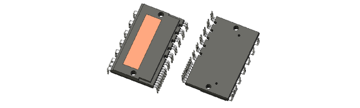 基板上に直接チップなどの部品を搭載できるDBC構造を採用することでパワーチップを高密度で実装しています。温度検知用のサーミスタも内蔵しています。