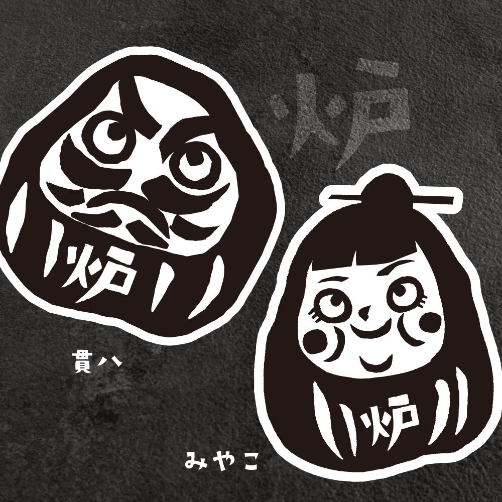 『錦上ル 炭炉まん』、『おすしと炉ばた 鮨炉まん』は各店舗にキャラクターを設定していることも特徴の一つです。キャラクターは昔、錦市場のすぐ近くに住んでいただるまの夫婦という設定で、両店舗は夫婦店と位置づけられています。