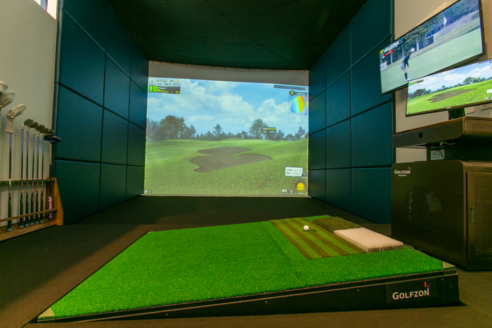 世界No.1シェアを誇るゴルフゾン社の最上位ゴルフシミュレーターである「VISION PLUS」や、ダンロップ社が徹底監修したシミュレーターの「SDR Golf Simulator」等を導入しており、200インチを超える大型スクリーンで、弾道やスイングの解析のほか、世界中の有名ゴルフコースでのラウンドも可能です。