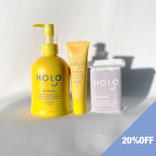 HOLOはアトピー性皮膚炎に悩む開発者が家族のために開発したお顔、身体全身に使えるスキンケア商品です。
