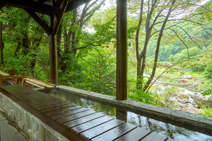 渓流のせせらぎに抱かれた岩風呂の露天風呂や、開放的な大きな窓から新緑・紅葉・雪など自然の移ろいを楽しめる内風呂など、景観を愛でながら、野趣あふれる湯あみをご堪能ください。