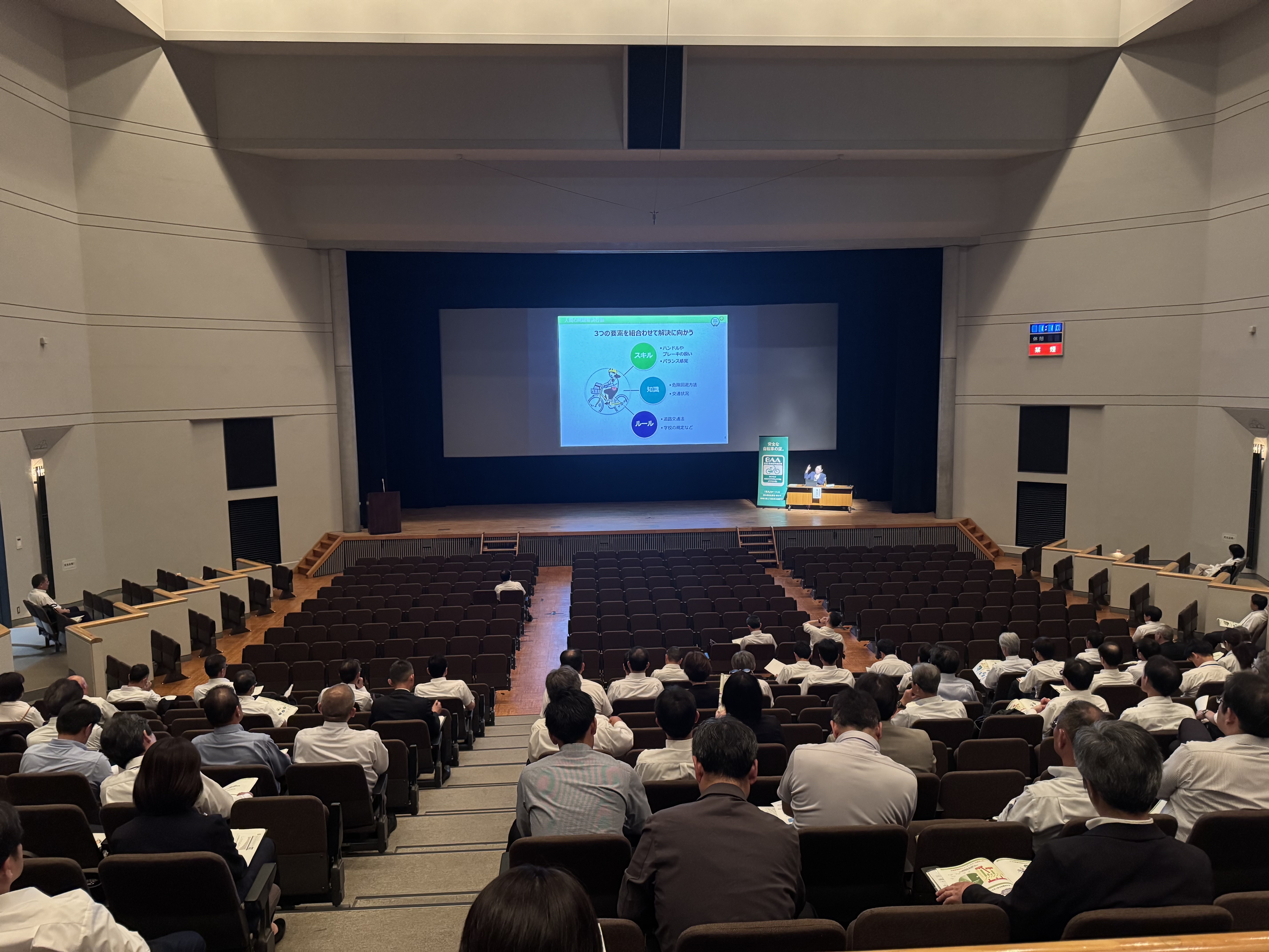 自転車の正しい利用方法や安全安心な自転車の選び方、メンテナンスの重要性を啓発する自転車の安全利用促進委員会と一般社団法人自転車協会は、愛媛県教育委員会主催のもと、2025年5月22日(木)に松前総合文化センターで行われた『令和7年度 総合危機管理等研修会』にて、自転車通学指導セミナーを実施し、県内の中学校、中等教育学校の教職員約120名が参加されました。