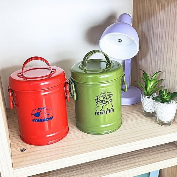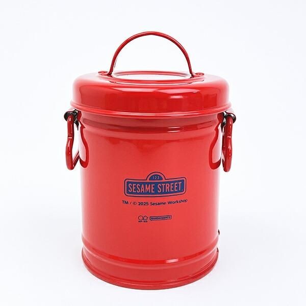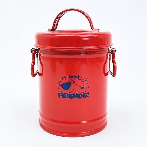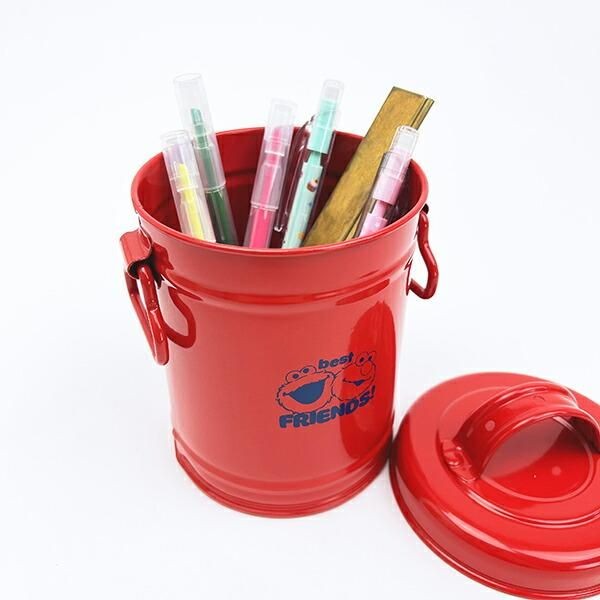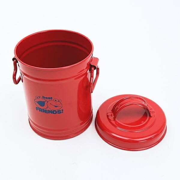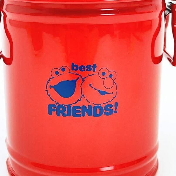 真っ赤なエルモカラーのダストボックス(ごみ箱)の形をしたペンスタンド。エルモとクッキーモンスター のイラストがキュート!