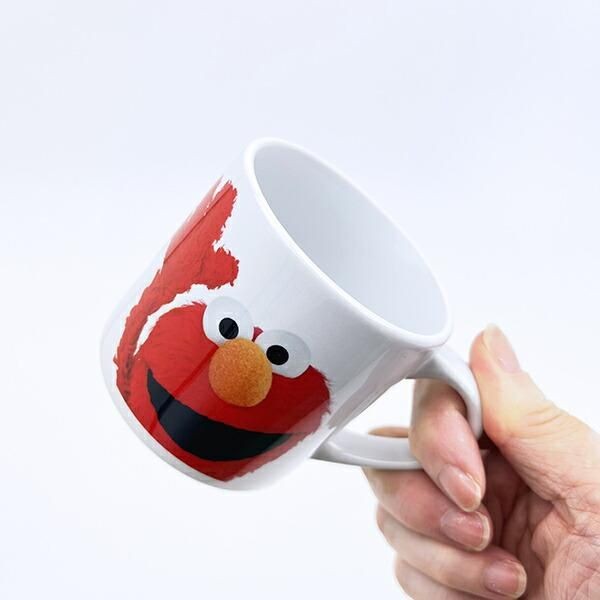 エルモのキュートな笑顔がとってもリアルなフェイスマグ。手の中に収まるちょうどいいサイズです。