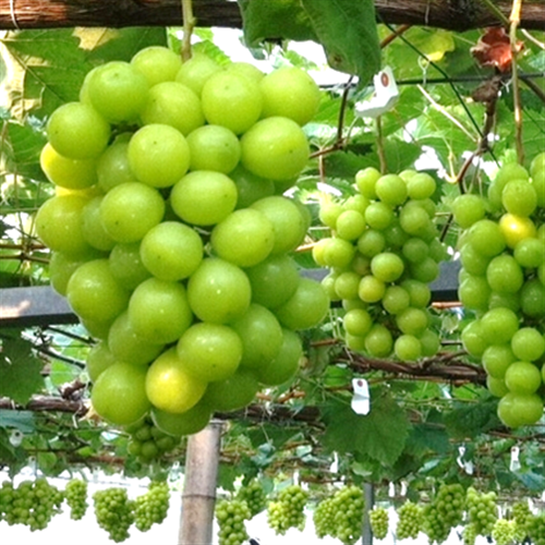 シャインマスカットは、酸味が少なく比較的糖度の高い粒が大きいことが特徴で、種がなく皮ごと食べることができます。巨峰は、糖度と食味にこだわって栽培しており、おおむね糖度18度以上のものを出荷しています。