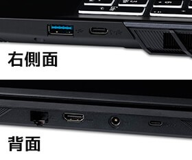 さらに、右側面のUSB Type-CはUSB PD(USB Power Delivery)にも対応しており、付属のACアダプターなしでもバッテリー充電が可能です(※1)。