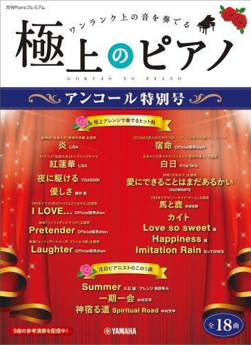 ピアノ上級者向けの華やかなアレンジを収載し、発刊している極上のピアノシリーズから、特に人気の高い楽曲を厳選し、『アンコール特別号』として緊急発刊いたします。