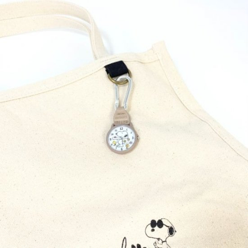 こちらはスヌーピーのカラビナウォッチ。留め具がカラビナなので、バッグやベルトに引っ掛けて簡単に装着できます。