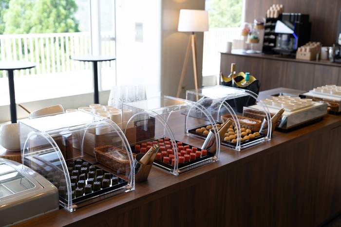 ■アルコールやスイーツを楽しめるラウンジ、ウッドデッキ