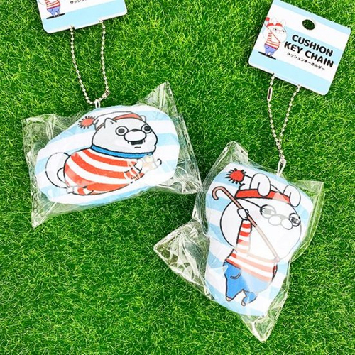 こちらは、クッションキーホルダーです。クッション性のある素材感が気持ち良くて、バッグなどにも付けられるボールチェーン付き。