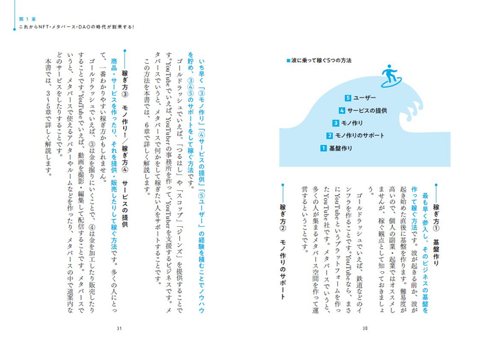 そこで本書は、NFT・メタバース・DAOなどについて、専門用語をできるだけ使わず、わかりやすい文章で「具体的な稼ぎ方」を伝授。