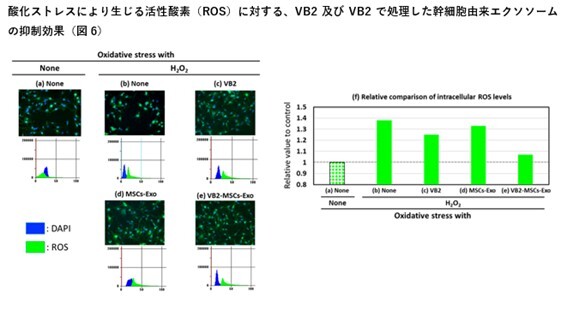●酸化ストレスにより生じる活性酸素(ROS)に対する、VB2及びVB2で処理した幹細胞由来エクソソームの抑制効果(図6)
