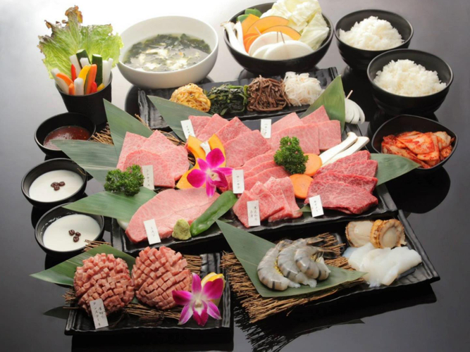 黒毛和牛3品を含む全16品。白菜キムチ・七つ星パリパリサラダ・銀しゃりがおかわり自由!