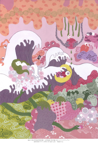 デザイン学科及びデザインメディア領域では、3号館地下1階から3階までを使用し、グラフィックデザイン、イラストレーション、映像情報デザイン、空間プロダクトデザインの4つの領域に分かれて、展示が行われます。学生たちが学びの集大成として、広告デザイン、ブランディングデザイン、イラストレーション、映像デザイン、インタラクションデザイン、UI/UXデザイン、空間デザインやプロダクトデザインなど、個々の視点から表現した作品が展示されます。