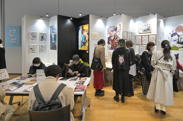 マンガ学科及びマンガメディア領域では、6号館地下1階フロアで展示が行われます。オリジナルのストーリーマンガやキャラクターイラストなどが様々な表現方法で展示されます。会期中は毎日、無料で似顔絵を描くイベントも開催されます。