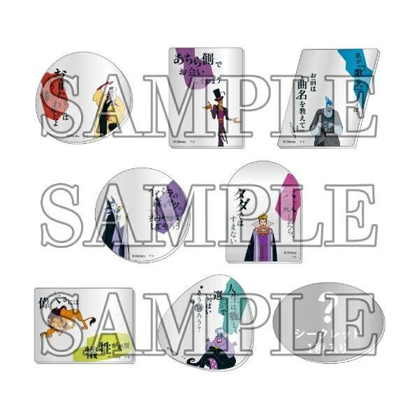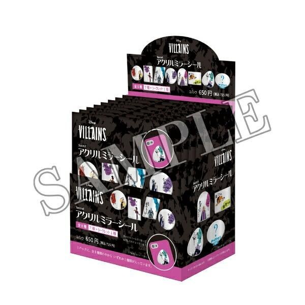 ディズニーの悪役たち「ヴィランズ」の言葉をデザインに取り入れたアクリルミラーシール。こちらはコンプリートBOXです。