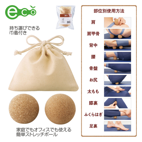 コルクストレッチボール:運動後の疲れた身体を労り、翌朝快適な1日を迎えていただきたいと考えています