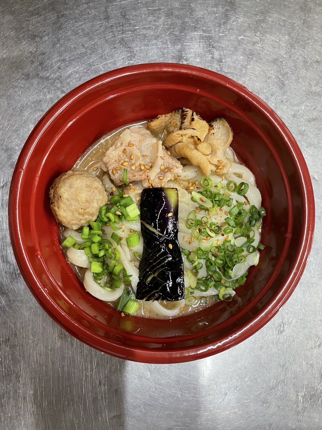 2024年の4月にオープンした比較的新しいお店で店内は明るく清潔感があり単独客でも入りやすい。店内では若い姉妹が切り盛りをしており、うどんの種類がとても豊富。生麺の販売もしており、自宅でも楽しむことができる。看板の角煮肉汁うどんは、大きな角煮に豚しゃぶと茄子と玉ねぎが入った贅沢な一品だ。
