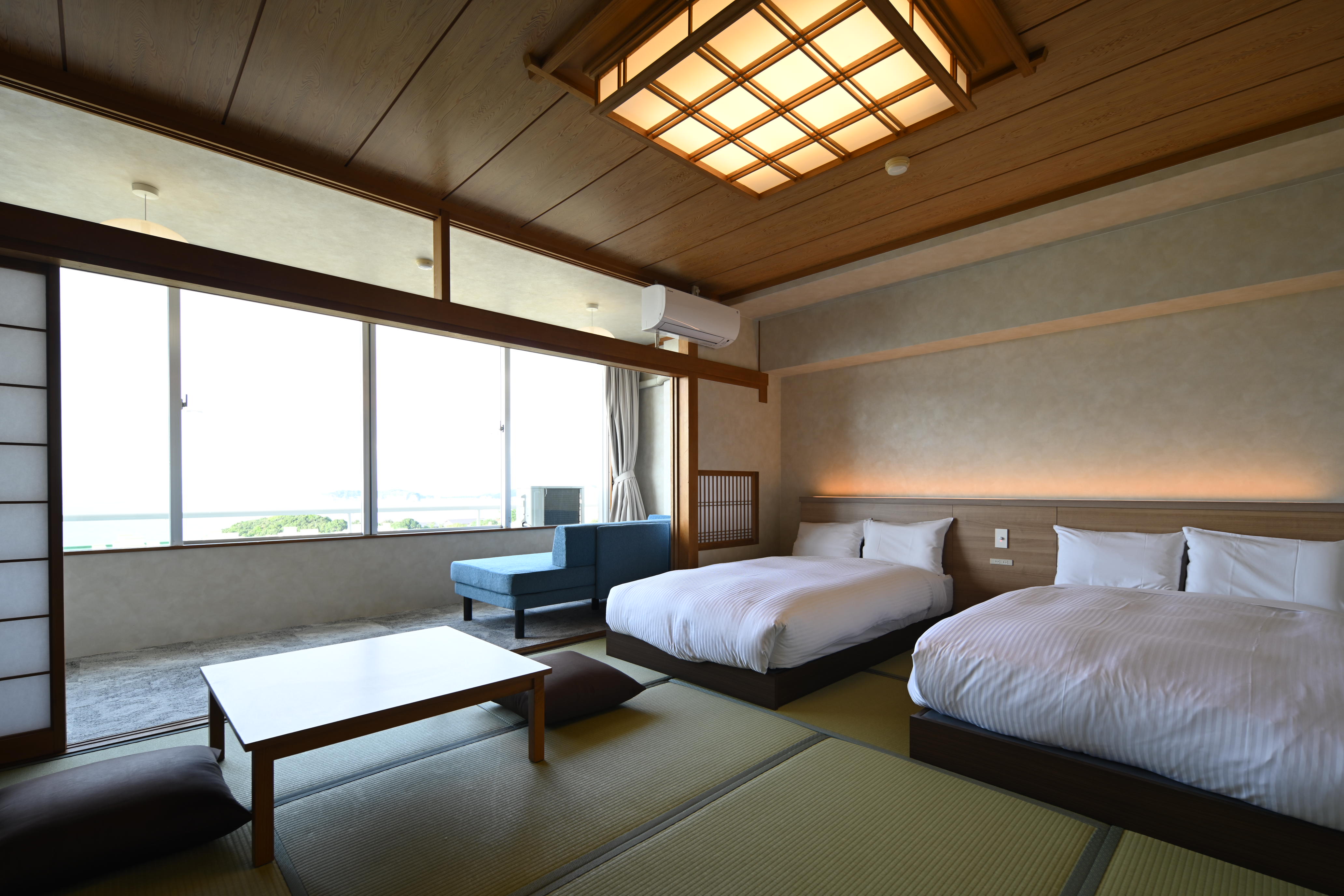 客室は和洋室を増室、多くの客室をリニューアルし、ゆっくりとくつろげる空間となりました。さらに、海側に面した客室からは太平洋の景色をご覧いただけます。