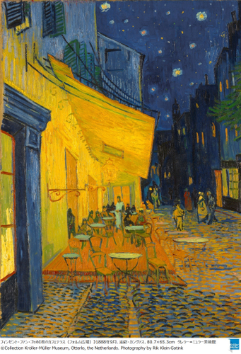 第1期の目玉は、約20年ぶりに日本で公開となる《夜のカフェテラス》。他にも《自画像》をはじめとする初期のオランダ時代から数多の傑作を生みだしたアルル時代までのファン・ゴッホ作品約60点や、同館が所蔵するクロード・モネ、オーギュスト・ルノワールら同時代の印象派巨匠の名作を展示します。