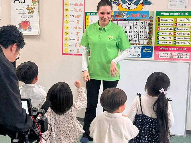 番組内では、ペッピーキッズクラブ講師の栁原麻乃が出演し、子どもたちが英語とともに未来に向かって一歩踏み出せるように、勇気と自信を育むペッピーの英語教育のこだわりについてお話させていただきました。また、実際のレッスンでは、子どもたちが“ペッピーのえいご”にふれて、目を輝かせながら夢中で英語を学ぶ、活き活きとした姿も放映されます。ぜひご覧ください。