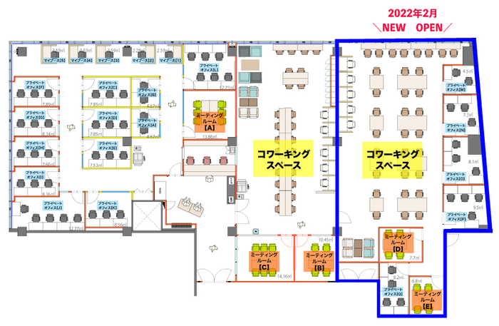 ・「完全個室型」プライベートオフォス5部屋を新設。