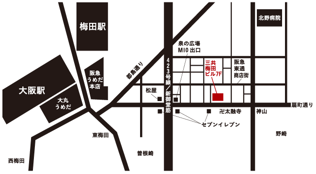 所在地 : 大阪市北区堂山町1-5 三共梅田ビル7階