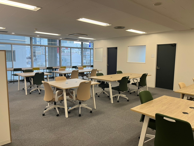 ・Wi-Fi、複合機、カフェスペースなどの設備、机などの備品完備。