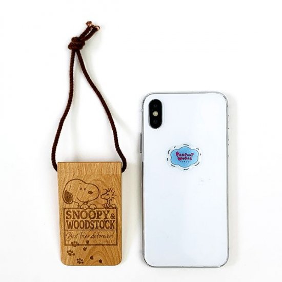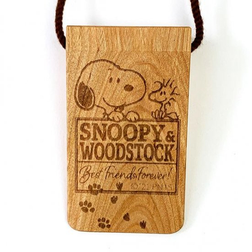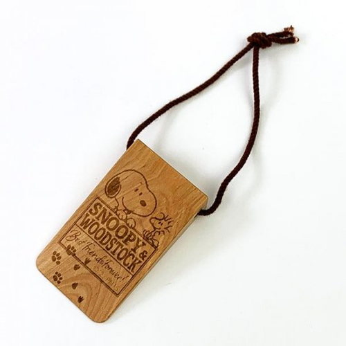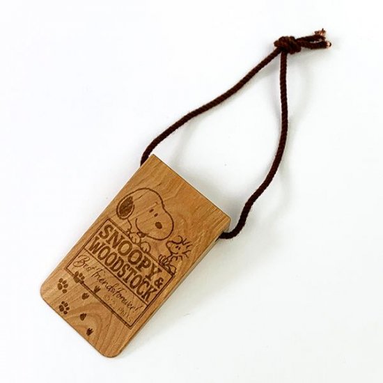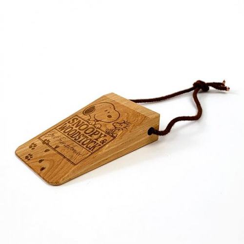 ヒモ付きで壁にも掛けられて、便利なスヌーピーのドアストッパー♪天然木のナチュラルテイストがツボ。