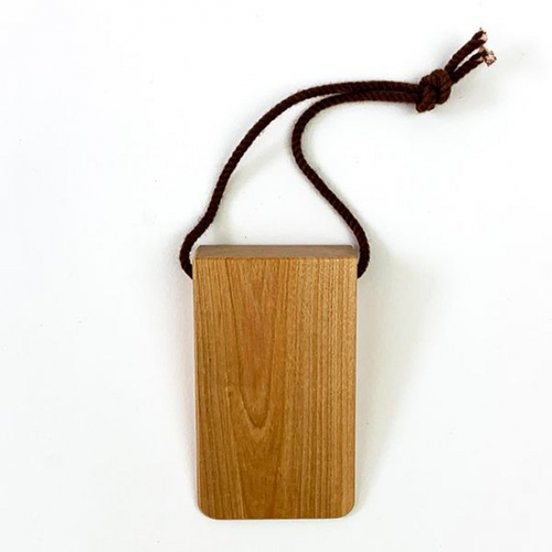 ヒモも素朴な雰囲気ある茶色で、天然木とマッチしています。価格は1,000円以下とお手頃なので実用的なプレゼントとしてもおすすめです。