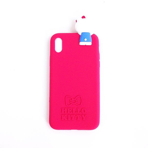 トップバッターは、キティちゃんのアイフォンXR専用ケース♡ショッキングピンクのキュートなカラーに、キティちゃんが上部にくっついていますね♪後ろ姿だけでもかわいさを感じてしまいます。ロゴの上には、お馴染みのリボンモチーフもデザインされていて、サンリオ女子にはたまりませんね~。バッグの中でも、すぐに見つけられそうです。