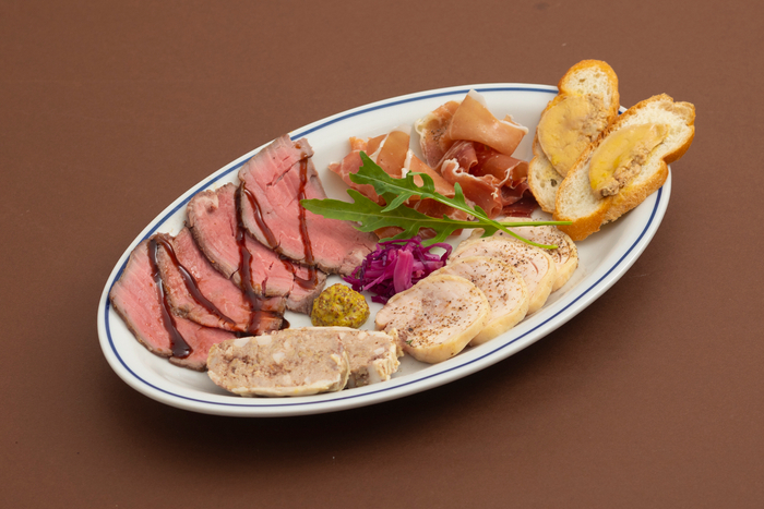 牛フィレ肉のロースト・スペイン産生ハム・フォアグラのコンフィ・自家製パテドカンパーニュ・日替わりシャルキュトリー・自家製ピクルス