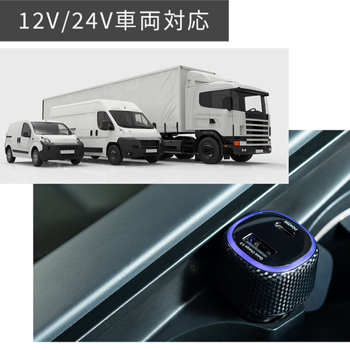 入力電圧が12V~24Vの車両に使えるため、シガーソケットが付いている車両であれば、乗用車だけでなく、トラックでも使用することが可能です。