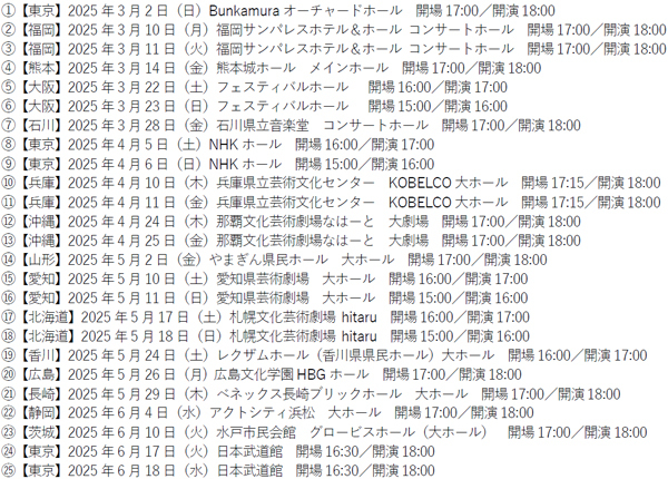10周年を迎えた本ツアーは初開催となる石川、山形、香川を含む、過去最大規模の全国15都市25公演で開催。記念すべきツアーファイナルは日本武道館での特別公演で、2015年のシリーズ初回から共演を重ねている指揮者の大友直人と、東京フィルハーモニー交響楽団との共演により、数々の名演が生まれた武道館でのコンサート史に新たな歴史が刻まれることとなるだろう。