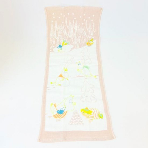 雪とたわむれるムーミンたちのデザインも、ご紹介♪カラーも淡いベージュとホワイトで、清潔感もあります。