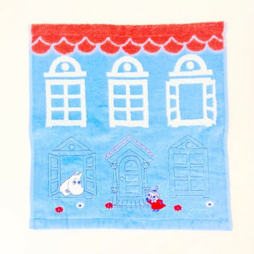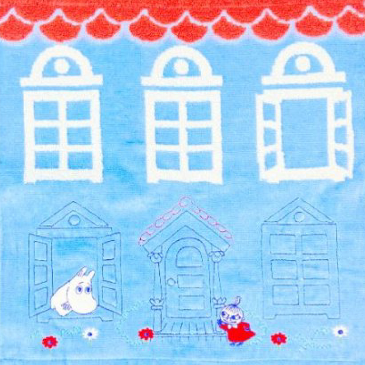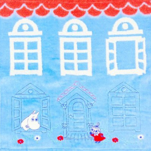 こちらは、家の窓から覗くムーミンと遊びにきたリトルミィが描かれたデザインです。爽やかなブルーに、リトルミィの赤いお洋服が目立っていますね♪