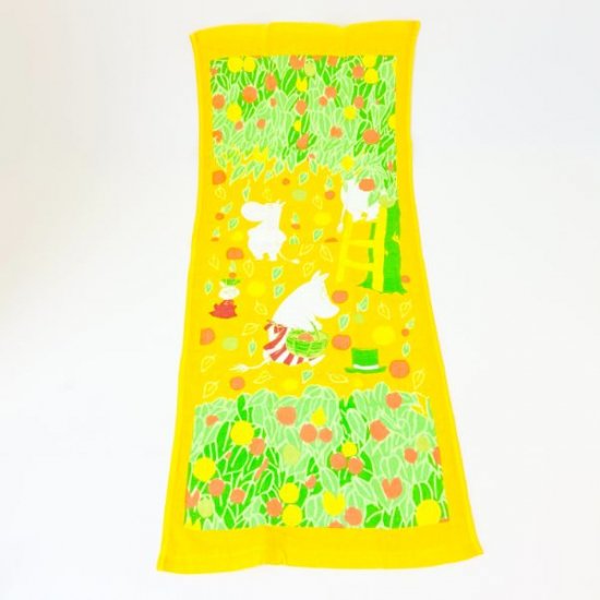 秋っぽいカラーのこちらは、リンゴの収穫の様子をデザインしています。ナチュラルテイストで、優しい雰囲気のタオルです。