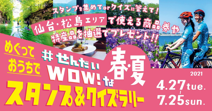 そんな仙台・松島エリアを対象にした「めぐって おうちで #せんだいWOW!なスタンプ&クイズラリー 春・夏」が2021年4月27日(火)よりスタートします。