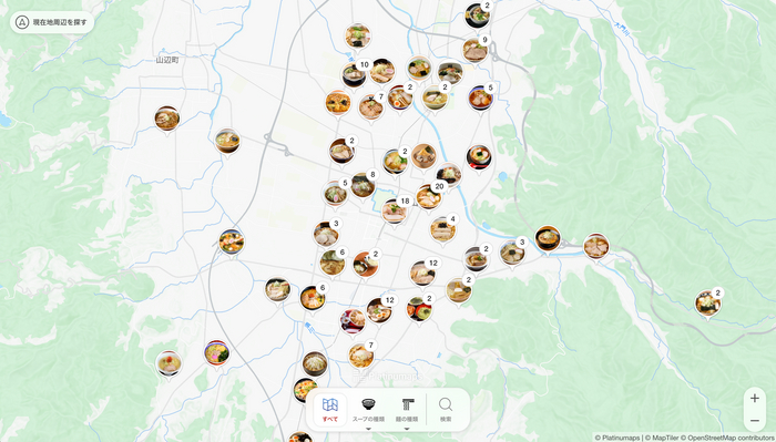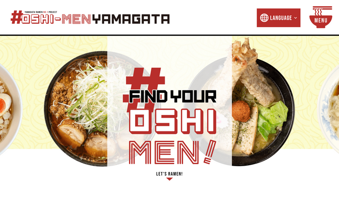 山形市内のラーメン提供店を紹介するための情報サイト「#推しメンやまがた」。サイト内では、スープや麺の種類から自分好みのお店を検索することができ、SNSで投稿されたラーメン情報を店舗ごとに確認することができます。