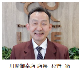 従業員一同今まで以上に挨拶・気遣い・対応力のある明るく親切な接客で、お客様から最も信頼され「川崎御幸店ファン」になっていただける地域一番店を目指します。