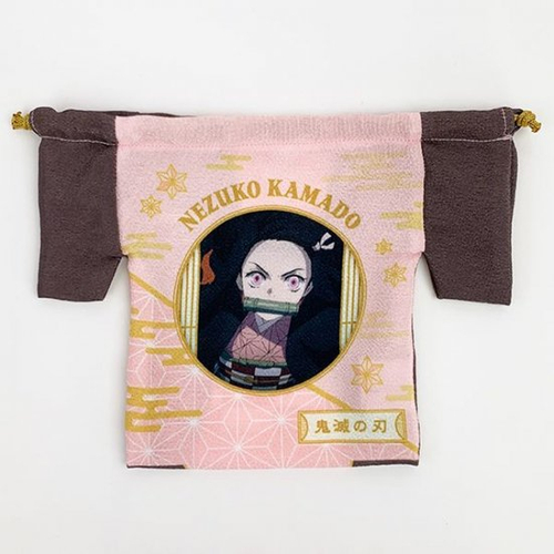 「鬼滅の刃」のヒロイン・竈門禰豆子をデザインした巾着袋もございます。ピンクの着物は、可愛らしい禰豆子のイメージにピッタリですよね♪