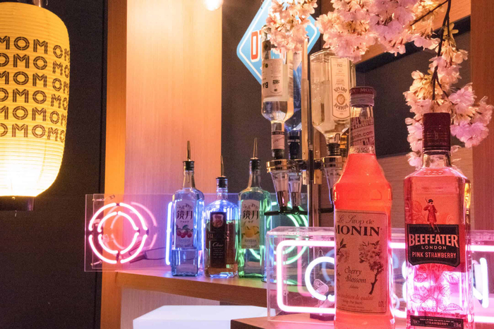 チェックインしたら、まずは夜通し居酒屋プラン専用フロアのバースペースへ!焼酎・ウイスキー・日本酒・リキュールなど定番のラインナップ に加えて、新ジャンルビールの生ビールサーバーも夜通し飲み放題 です。今回はお花見気分を盛り上げるロゼワインなども加わり全12種のお酒を常時楽しめます。さらに、春らしい桜のシロップも用意しており、オリジナルカクテルを作って楽しむのもおすすめ!お好きなお酒を選んだら、さっそく乾杯!お酒のカスタマイズは自由自在ですが、お酒の量はほどほどに…。