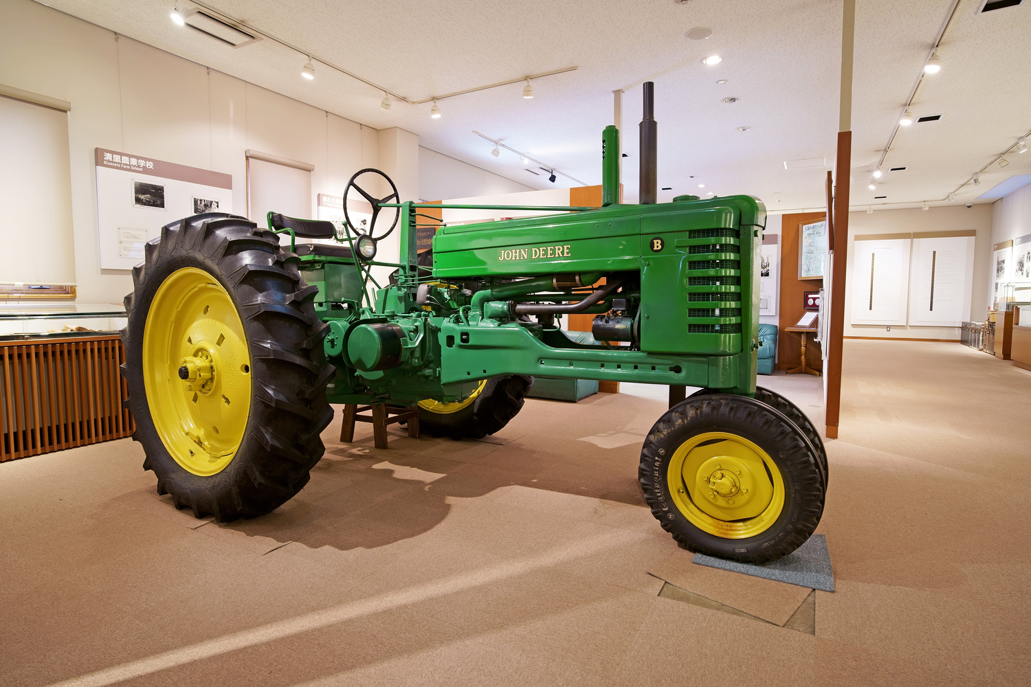 またポール・ラッシュ記念館では、清泉寮に最初に寄付された「ジョンディアB型」を館内で一般公開しており、トラクターに乗って記念写真を撮ることもできます。