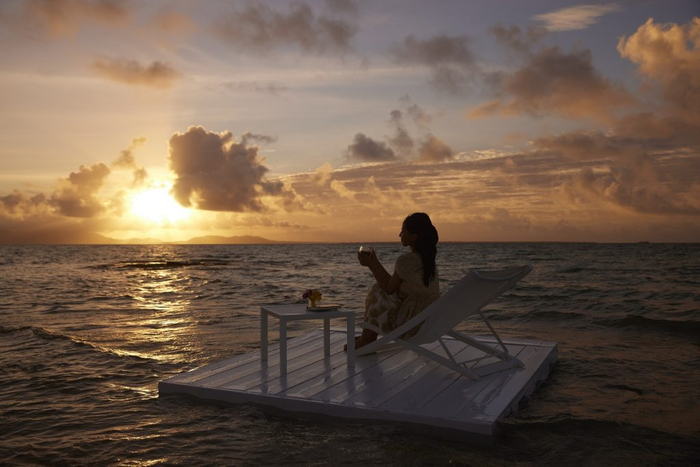 キャンプサイトは、ホテル隣接のビーチから少し離れた、当プランでのみ使用できる貸切のビーチエリアです。朝には目の前から昇る朝日、日中にはコバルトブルーの海、夜には満天の星を堪能できます。絶景をより楽しんでいただけるよう、海上にはビーチチェアを用意。テントを張ったり火をおこしたり、時間のかかる準備は一切必要ありません。もちろん片付けも不要です。