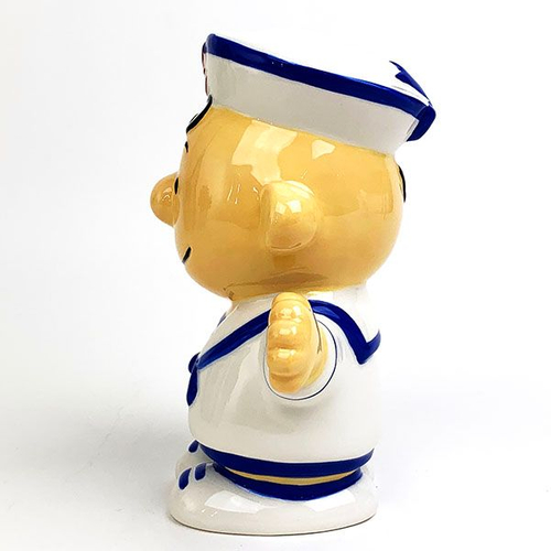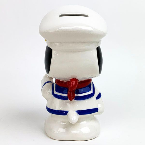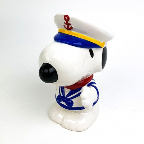 マリンスタイルのスヌーピーがとってもキュートな貯金箱です。帽子までかぶっていて、本格的なマリンテイスト!片手を出しているポーズも決まっていますね。サイズは160×90×130mmです。インテリアとしても最適なサイズですね♪