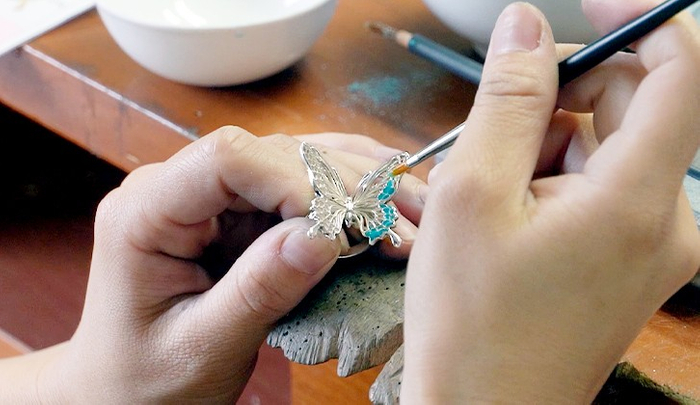 ■七宝や樹脂で、ジュエリー職人の手仕事により様々な色彩を自由に表現