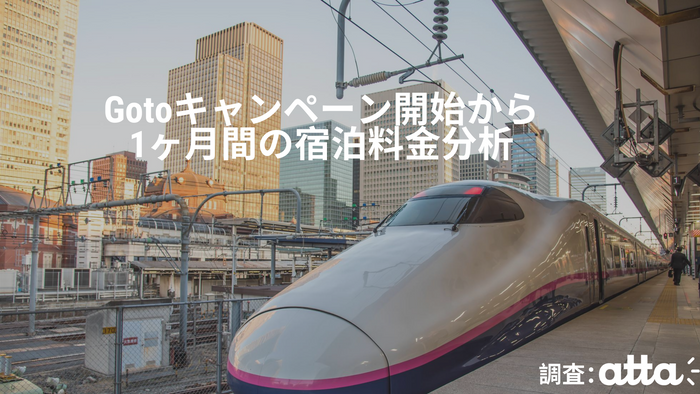ビッグデータとAIを使った「お得予報型」旅行検索サービス「atta(あった)」(https://atta.ai)を運営する、株式会社atta (本社:東京都荒川区、代表取締役社長:春山佳久)は、2020年7月22日からはじまったGo Toトラベルキャンペーン、最初の1ヶ月間の宿泊料金トレンドを調査しました。宿泊料金トレンドにて宿泊予約の需要が把握することができます。
