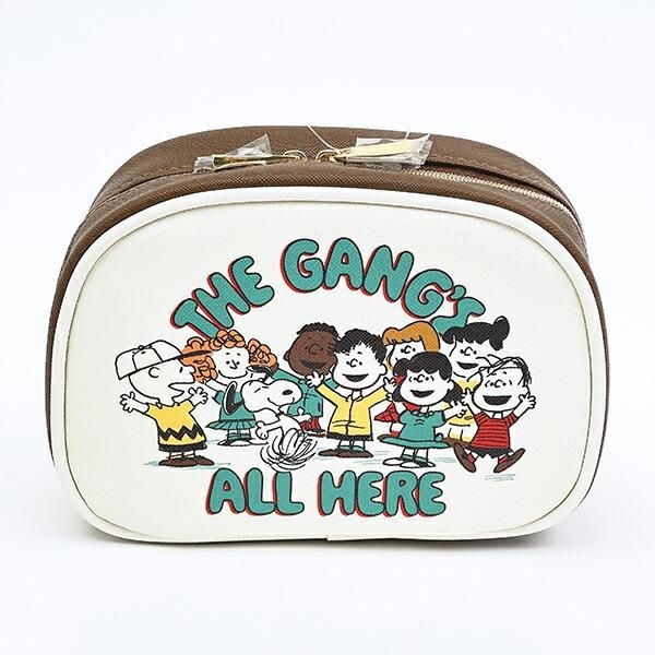 こちらは色がはっきりしている、スヌーピーのおしゃれなラウンドポーチです。色や質感が、ゴールドのファスナーが高級感ある雰囲気。